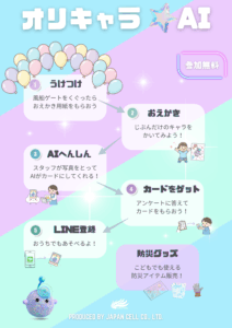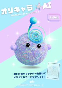 ジャパンセルでは自分で描いた絵を生成AIがオリジナルのトレカ画像にしてくれる楽しい体験ができます。